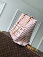 This is a replica LOUIS VUITTON M15121 Carry It Bag. ,37 x 37 x 2 cm ,Beige/Plum Purple,Cotton-canvas,Cowhide leather trim,Textile lining,Gold-colour hardware,Zip closure,Inside flat pocket,Fits smartphone, Zippy Wallet, keys, lipstick,Handle: Single x2