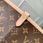 This is a replica LOUIS VUITTON M15124 Neverfull Inside Out GM Tote Bag. ,39 x 32 x 19 cm ,Monogram Beige,Coated canvas,Cowhide leather trim,Textile lining,Gold-colour hardware,Hook closure,1 inside flat printed zipped pocket,2 side laces,2 side hooks,Fits 13-inch laptop, smartphone, earphones, Zippy Wallet, keys,Strap: Removable, non-adjustable,Strap Drop: 42.0 cm,Handle: Single x2