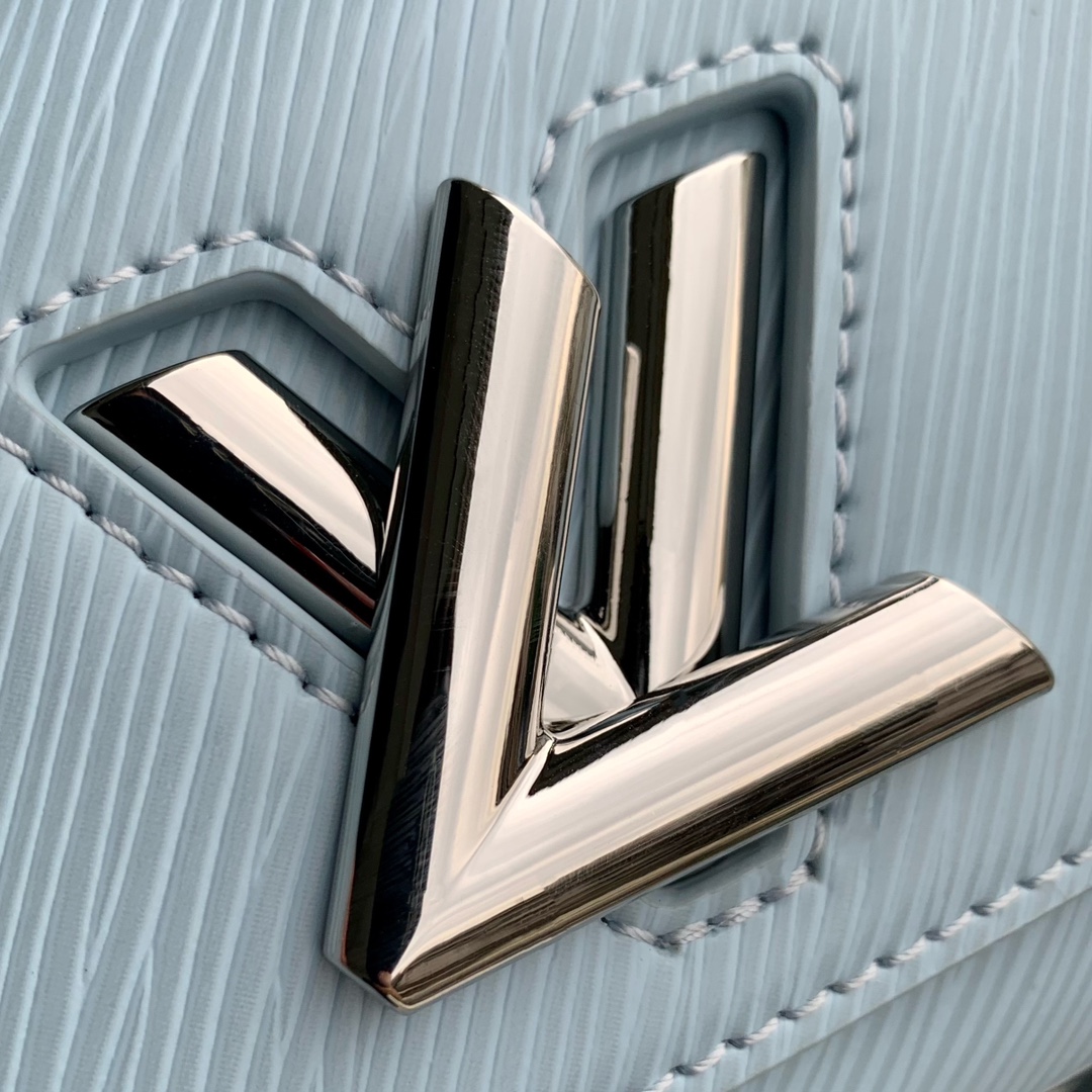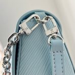 This is a replica LOUIS VUITTON M24566 Twist West.,9.3 x 4.7 x 2.8 inches ,Candy Blue,Epi grained cowhide leather,Epi grained cowhide-leather trim,Smooth cowhide-leather lining,Gold-color hardware,Strap:Removable, not adjustable,Strap drop:7.7 inches,Chain:Removable,Chain drop:7.7 inches