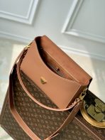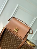 This is a replica LOUIS VUITTON M24640 Soft Twist.,10.6 x 7.5 x 3.5 inches ,Cognac,Calfskin,Calfskin trim,Suede-calfskin lining,Aged-gold-color hardware,LV magnet closure,Inside back zipped pocket,Inside flat pocket with removable mirror,Inside front flat pocket,Fits: compact wallet, smartphone, keys, earphones, and lipstick,Strap:Removable, adjustable,Strap drop:16.1 inches,Strap drop max:20.3 inches