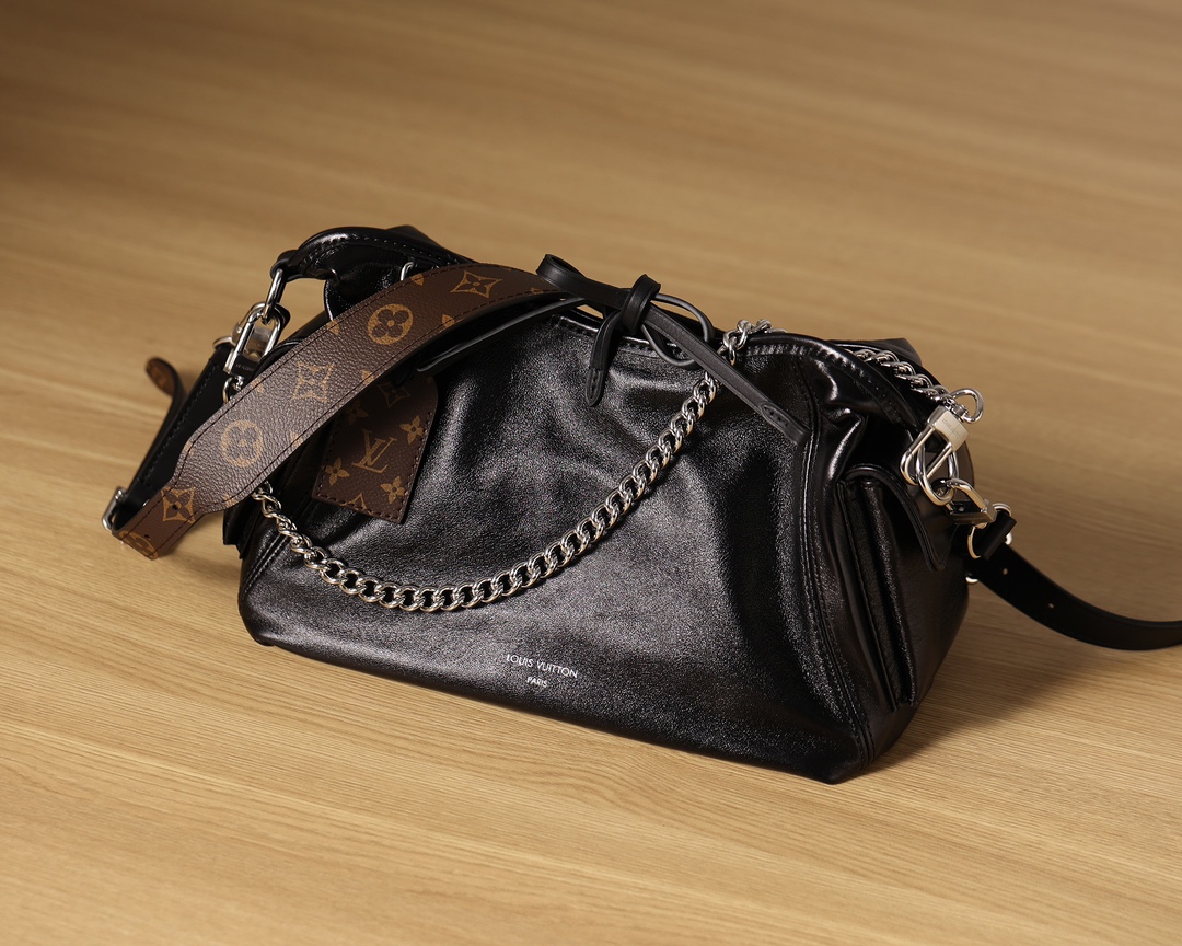 This is a replica LOUIS VUITTON M24861 CarryAll Cargo Vibe PM. ,33.5 x 23 x 15 cm ,Black,Lambskin,Cowhide leather trim,Microfibre lining,Silver-colour hardware,Zipped inside pocket,2 outer pockets,Fits 6.7-inch smartphone, Zippy wallet, tissues, lipstick, earphones, sunglasses, keys,Weight: 0.7 kg,Strap: Removable, adjustable,Strap Drop: 32.0 cm,Strap Drop Max: 48.0 cm,Chain: Removable,Chain Drop: 24.0 cm