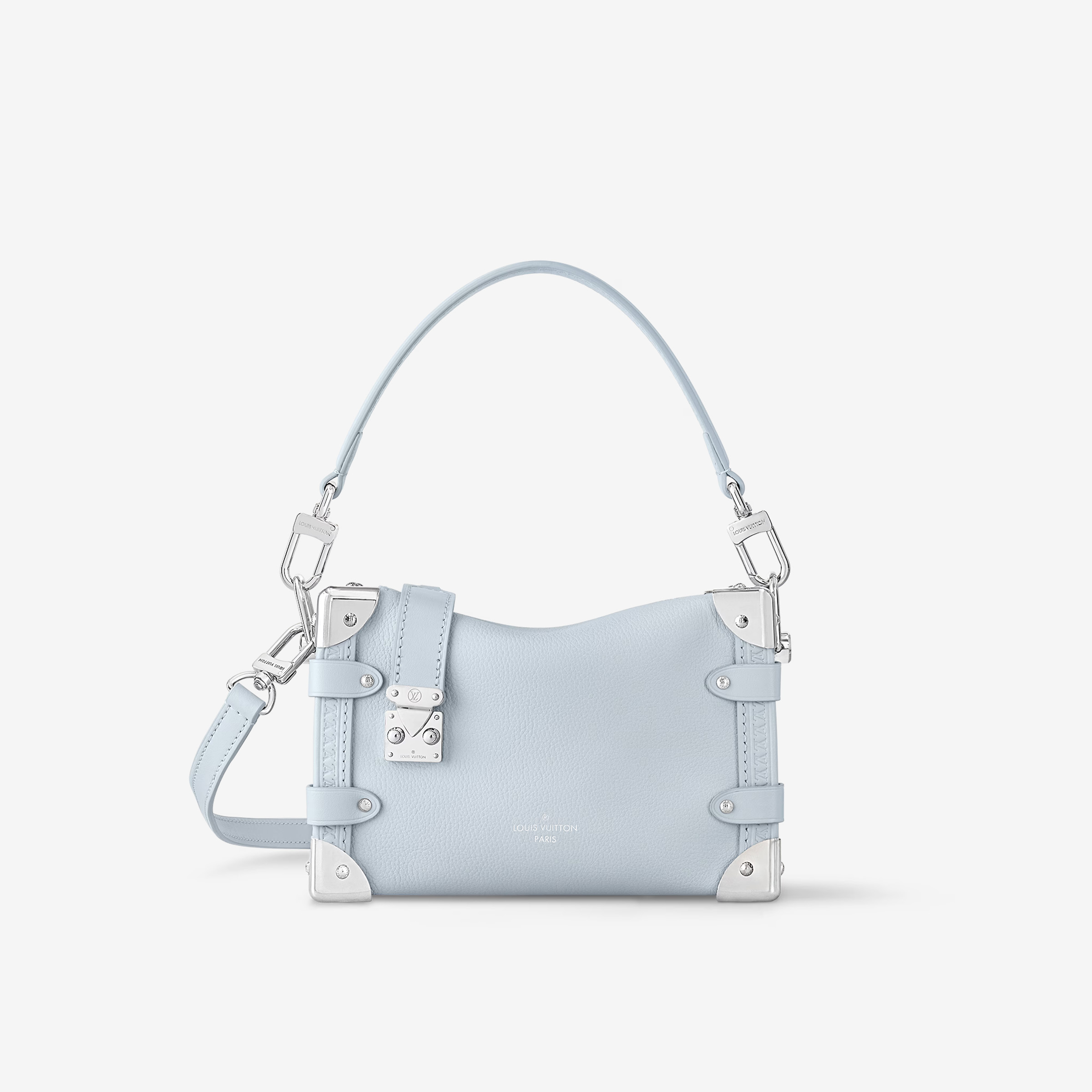 This is a replica LOUIS VUITTON M25067 Side Trunk PM. ,7.5 x 4.9 x 3 inches ,Olympe Blue,Grained calf leather,Smooth cowhide-leather trim,Microfiber lining,Silver-color hardware,Zip closure with S-lock,Fits: compact wallet, smartphone, keys, earphones, and lipstick,Strap:Removable, adjustable,Strap drop:19.7 inches,Strap drop max:23.6 inches,Handle:Single, removable