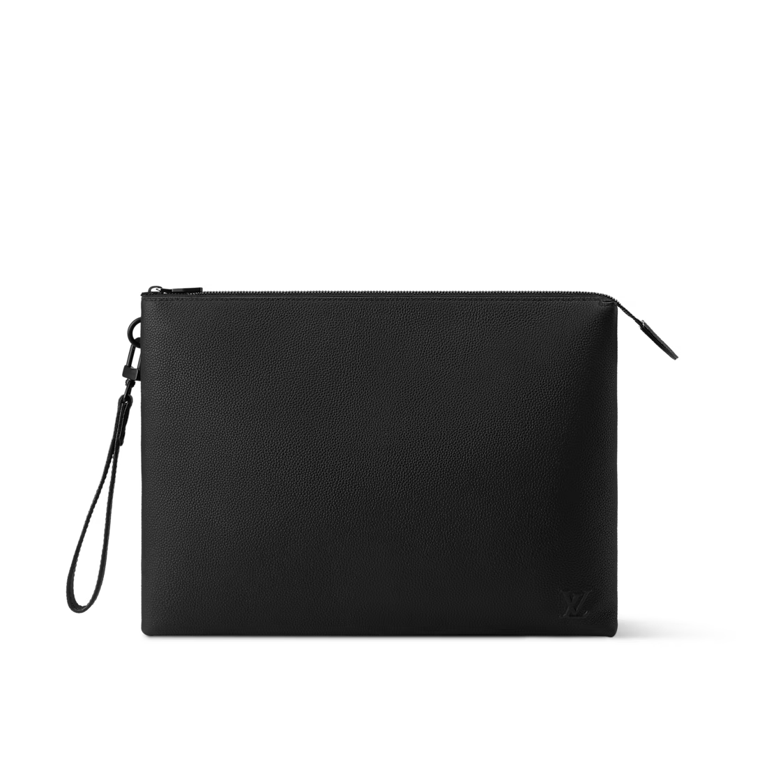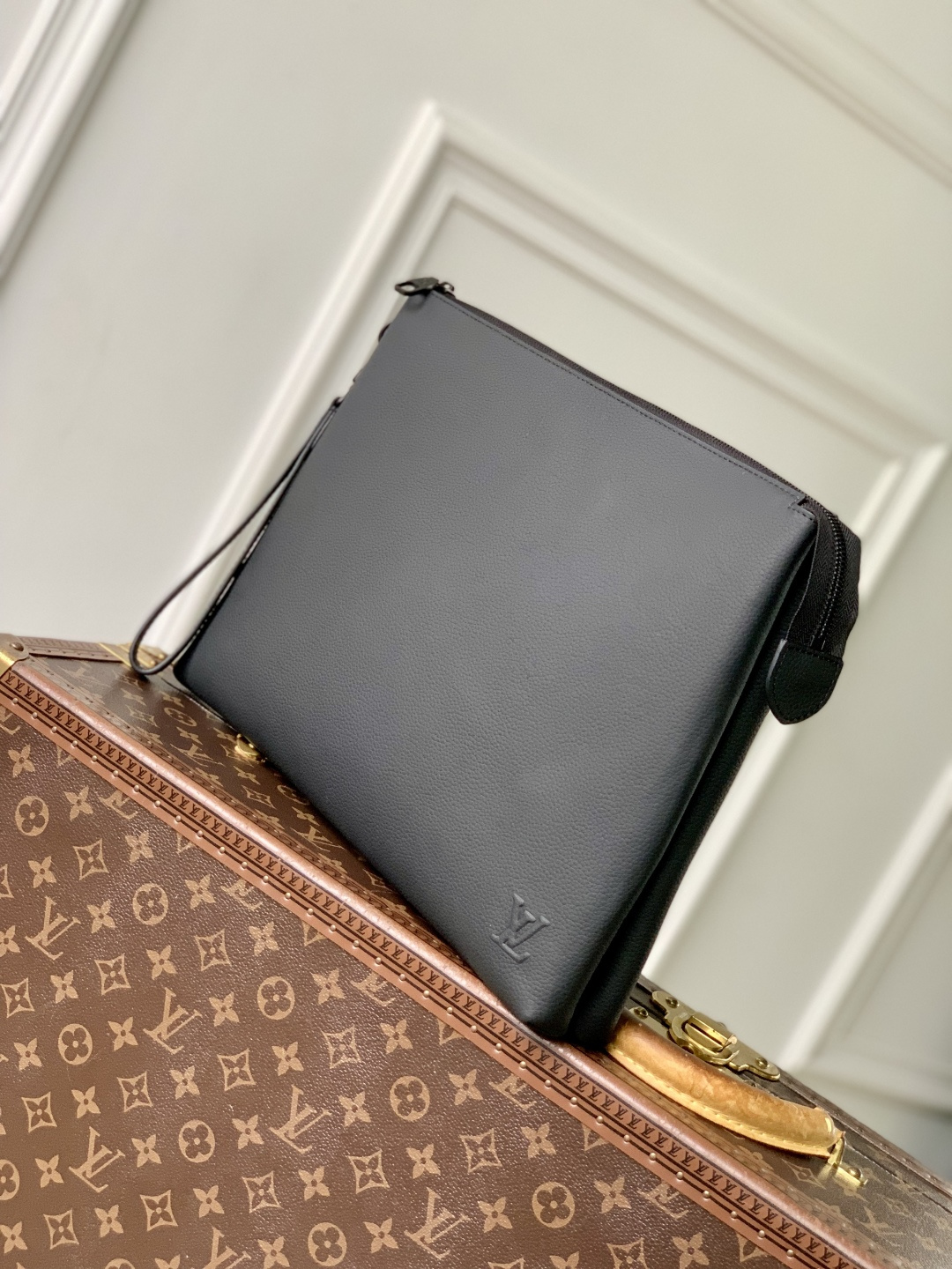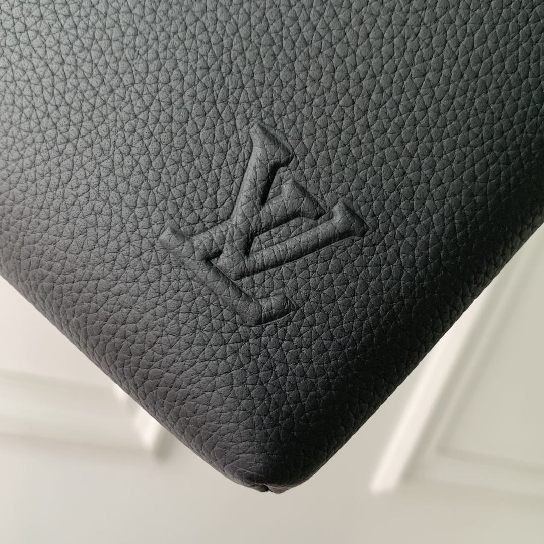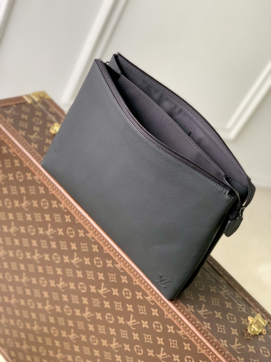 This is a replica LOUIS VUITTON M25943 ,Inspired by the laptop sleeve, the Duo Pouch in waxy calfskin pushes the design further with three separate compartments: two for laptops and a central padded compartment that is perfect for a charger, mouse or phone. Supple calf leather gives the pouch a slightly puffed aspect that protects belongings. The removable wrist strap offers versatile carry options.,