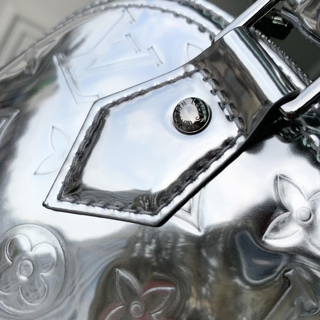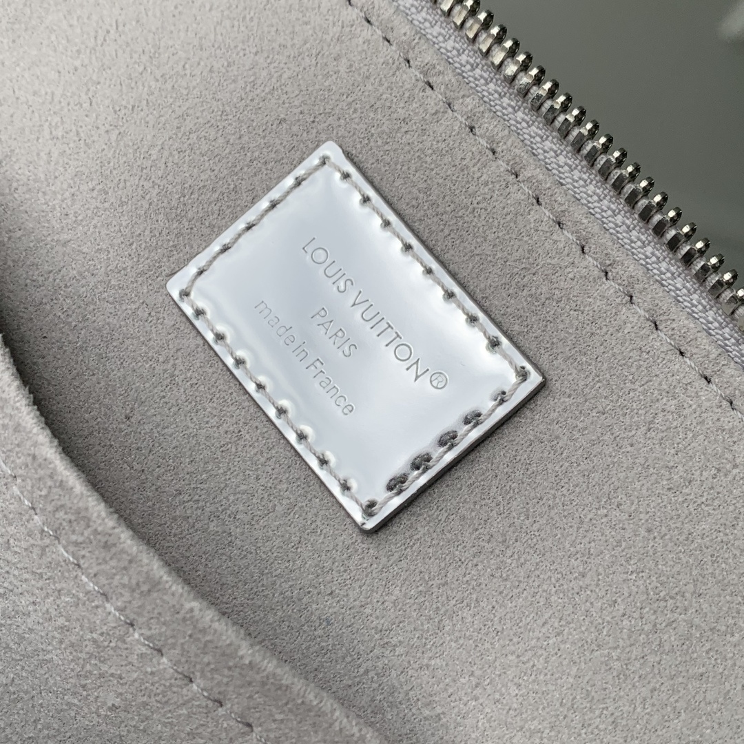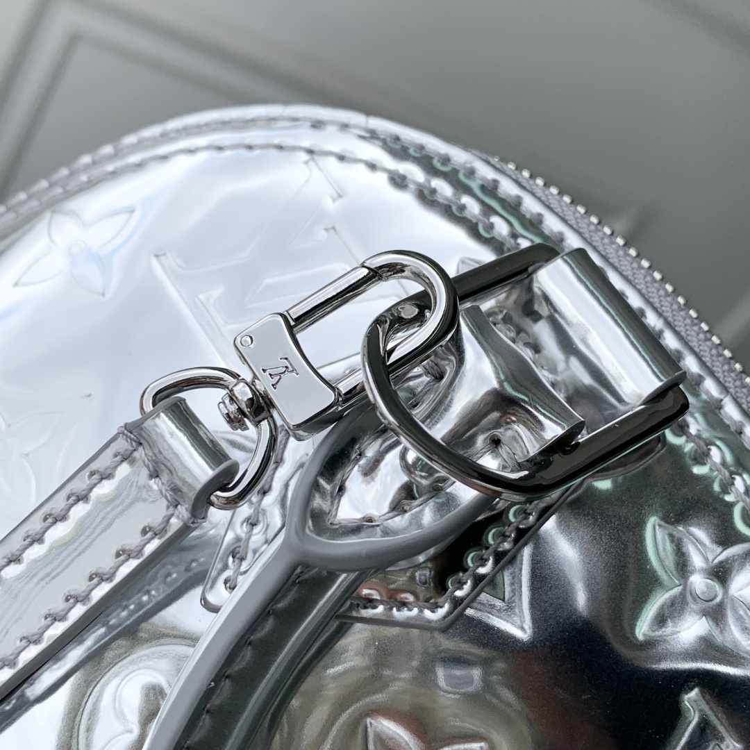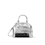 This is a replica LOUIS VUITTON M26335 Alma BB. ,23.5 x 17.5 x 11.5 cm ,Silver,Coated canvas,Coated canvas trim,Textile lining (cotton and polyester),Silver-colour hardware,Double zip closure with padlock,1 inside flat pocket,Fits 6.7-inch smartphone, earphones, sunglasses, keys, lipstick,Strap: Removable, non-adjustable,Strap Drop: 52.0 cm,Handle: Single x2