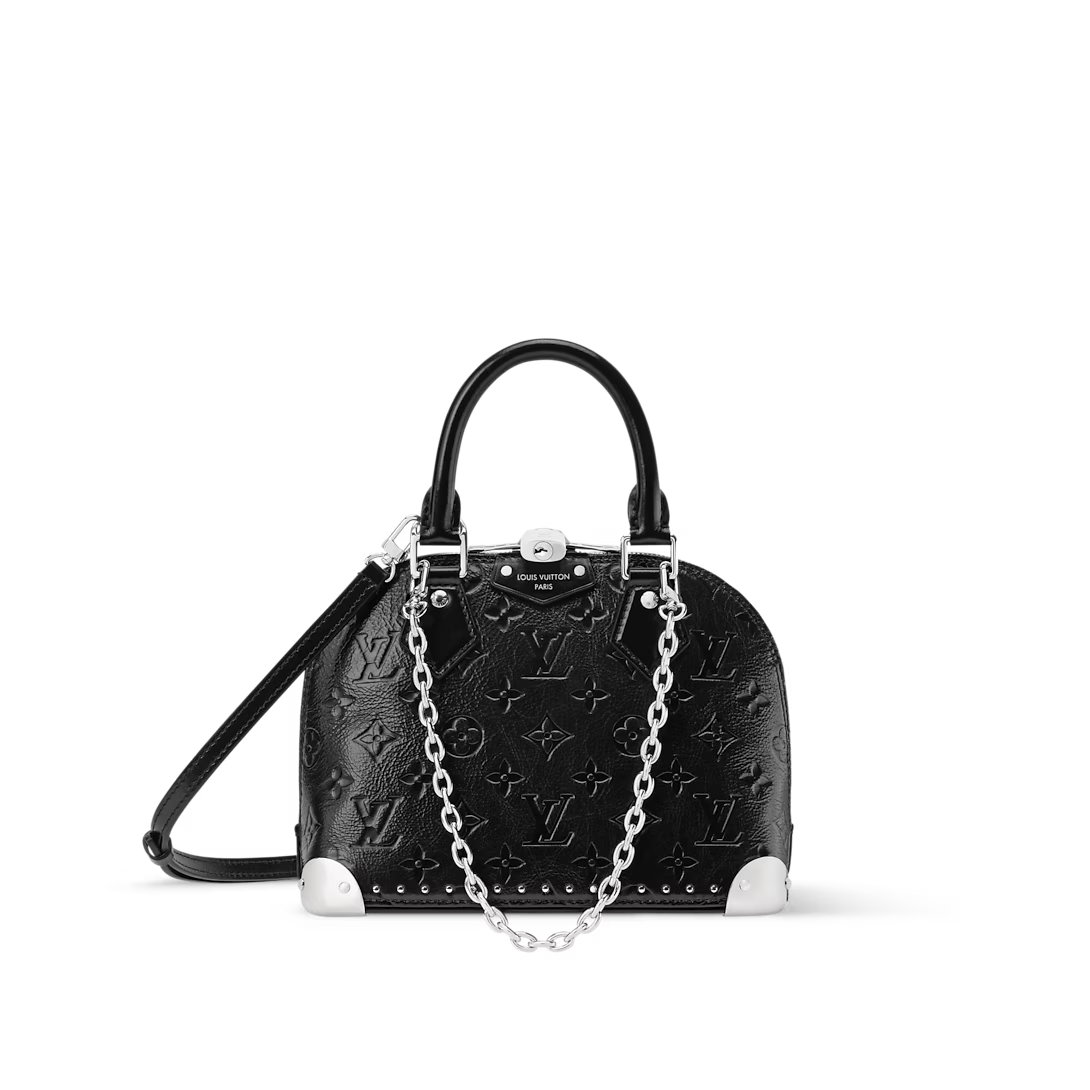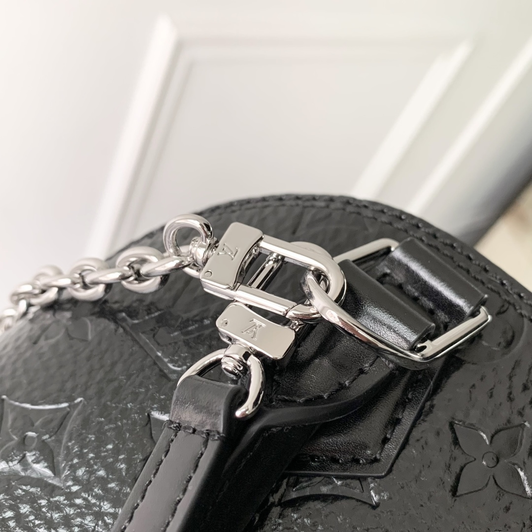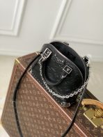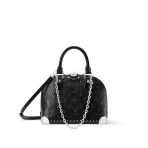 This is a replica LOUIS VUITTON M27812 Alma BB Trunk Bag. ,22 x 19 x 11 cm ,Black,Calfskin,Cowhide leather trim,Microfibre lining,Silver-colour hardware,Zip closure with padlock and keys,1 flat inside pocket,Fits 6.7-inch smartphone, earphones, Rosalie Coin Purse, keys, lipstick,Strap: Removable, adjustable,Strap Drop: 50.0 cm,Strap Drop Max: 66.0 cm,Chain: Removable,Chain Drop: 22.0 cm,Handle: Single x2