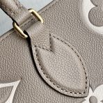 This is a replica LOUIS VUITTON M45494 OnTheGo MM. ,13.8 x 10.6 x 5.5 inches ,Tourterelle Beige/Cream,Embossed grained cowhide leather,Grained cowhide-leather trim,Microfiber lining,Gold-color hardware,Inside flat zipped pocket,Inside double pocket,2 long leather shoulder straps (drop: 24 cm),Fits: 13-inch laptop, smartphone, keys, Zippy Long Wallet, earphones,Handle:Double