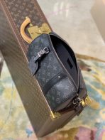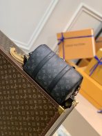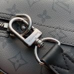 This is a replica LOUIS VUITTON M45936 City Keepall. ,27 x 17 x 13 cm ,Monogram Eclipse and Monogram Eclipse Reverse coated canvas,Cowhide leather trim,Textile lining,Black hardware,Double zipped closure,Large main compartment,Removable name tag,Strap: Removable, adjustable,Strap Drop: 45.0 cm,Strap Drop Max: 56.0 cm