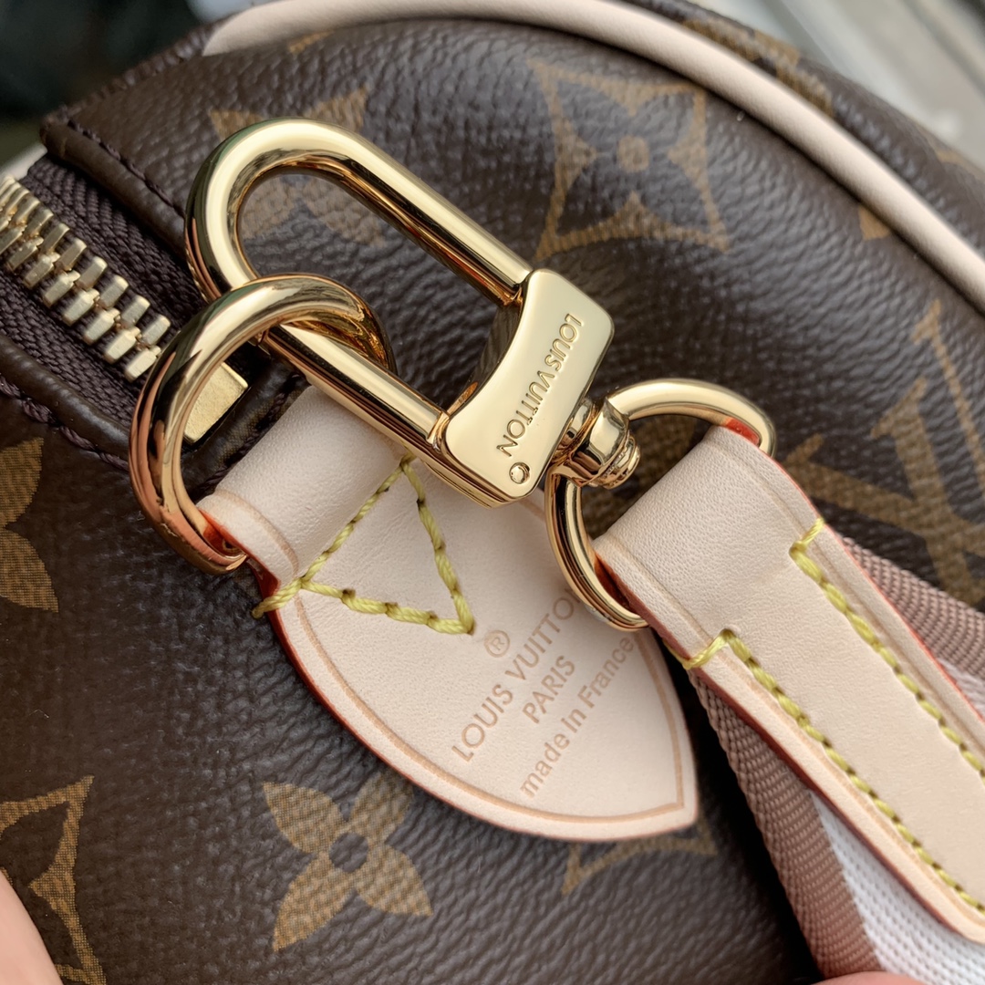 This is a replica LOUIS VUITTON M46222 Speedy Bandoulière 20. ,8.1 x 5.3 x 4.7 inches ,Monogram coated canvas,Natural cowhide-leather trim,Textile lining,Gold-color hardware,Padlock,Inside flat pocket,Padlock,Fits: 6.7-inches smartphone, Lou Compact Wallet, keys, tissues, book, sunglasses, lipstick,Strap:Removable, adjustable,Strap drop:19.3 inches,Strap drop max:21.3 inches,Handle:Double