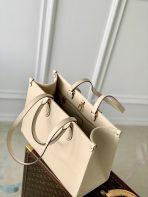 This is a replica LOUIS VUITTON M46531 OnTheGo MM. ,13.8 x 10.6 x 5.5 inches ,Crème Beige,Embossed grained cowhide leather,Grained cowhide-leather trim,Microfiber lining,Gold-color hardware,Inside flat zipped pocket,Inside double pocket,2 long leather shoulder straps (drop: 24 cm),Fits: 13-inch laptop, smartphone, keys, Zippy Long Wallet, earphones,Handle:Double