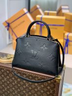 This is a replica LOUIS VUITTON M58916 Petit Palais Bag. ,29 x 18 x 12.5 cm ,Noir,Embossed grained cowhide leather,Grained cowhide leather trim,Microfibre lining,Gold-colour hardware,3 compartments with 1 central zipped compartment,2 inside flat pockets,Name tag,Padlock,Strap: Removable, adjustable,Strap Drop: 47.0 cm,Strap Drop Max: 54.0 cm,Handle: Single x2
