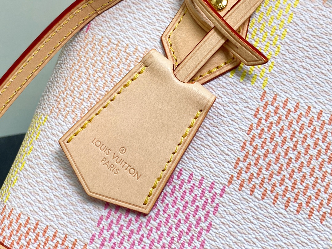 This is a replica LOUIS VUITTON N40516 Alma BB. ,9.3 x 6.9 x 4.5 inches ,Peach,Damier Giant coated canvas,Cowhide-leather trim,Twill lining,Gold-color hardware,Double zip closure,Padlock,Key bell,Inside flat pocket,4 protective metal bottom studs,Fits: 6.7-inches smartphone, earphones, lipstick, tissues, keys, sunglasses,Weight: 0.5 kg,Strap:Removable, adjustable,Strap drop:19.7 inches,Strap drop max:24.4 inches,Handle:Double