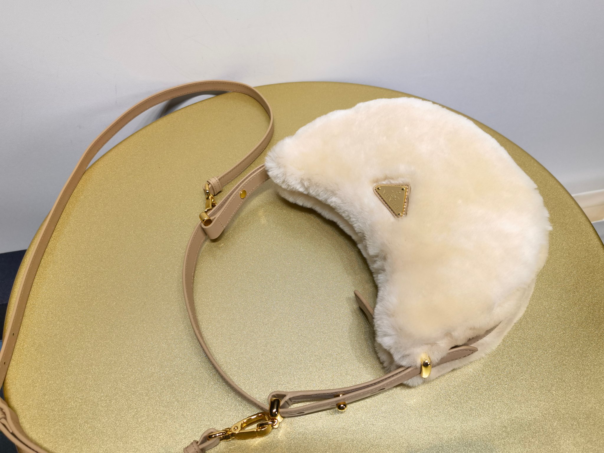 Prada 1BC194 Arqué small shearling and leather shoulder bag