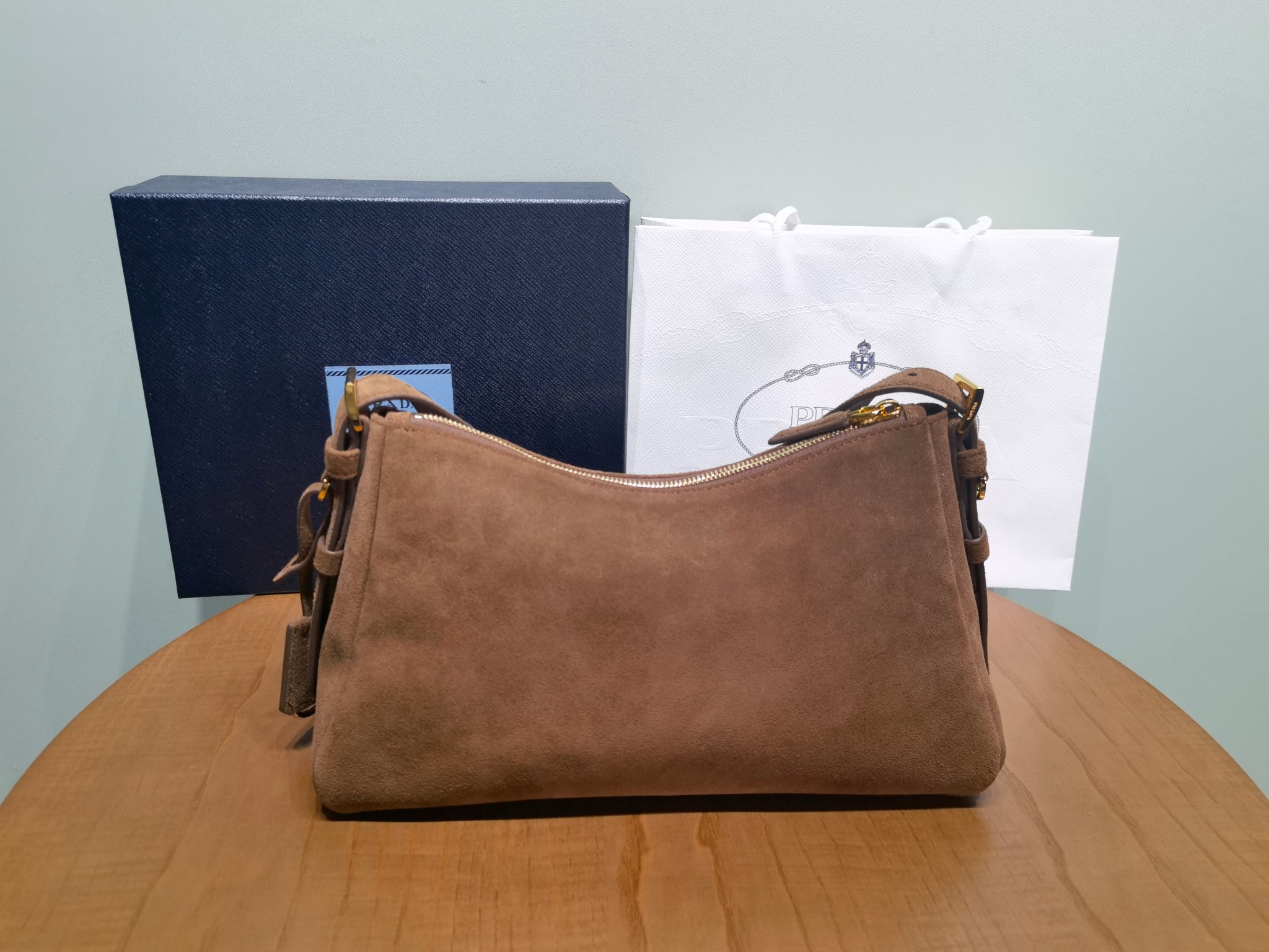Prada Aimée 1BC229 medium suede leather shoulder bag