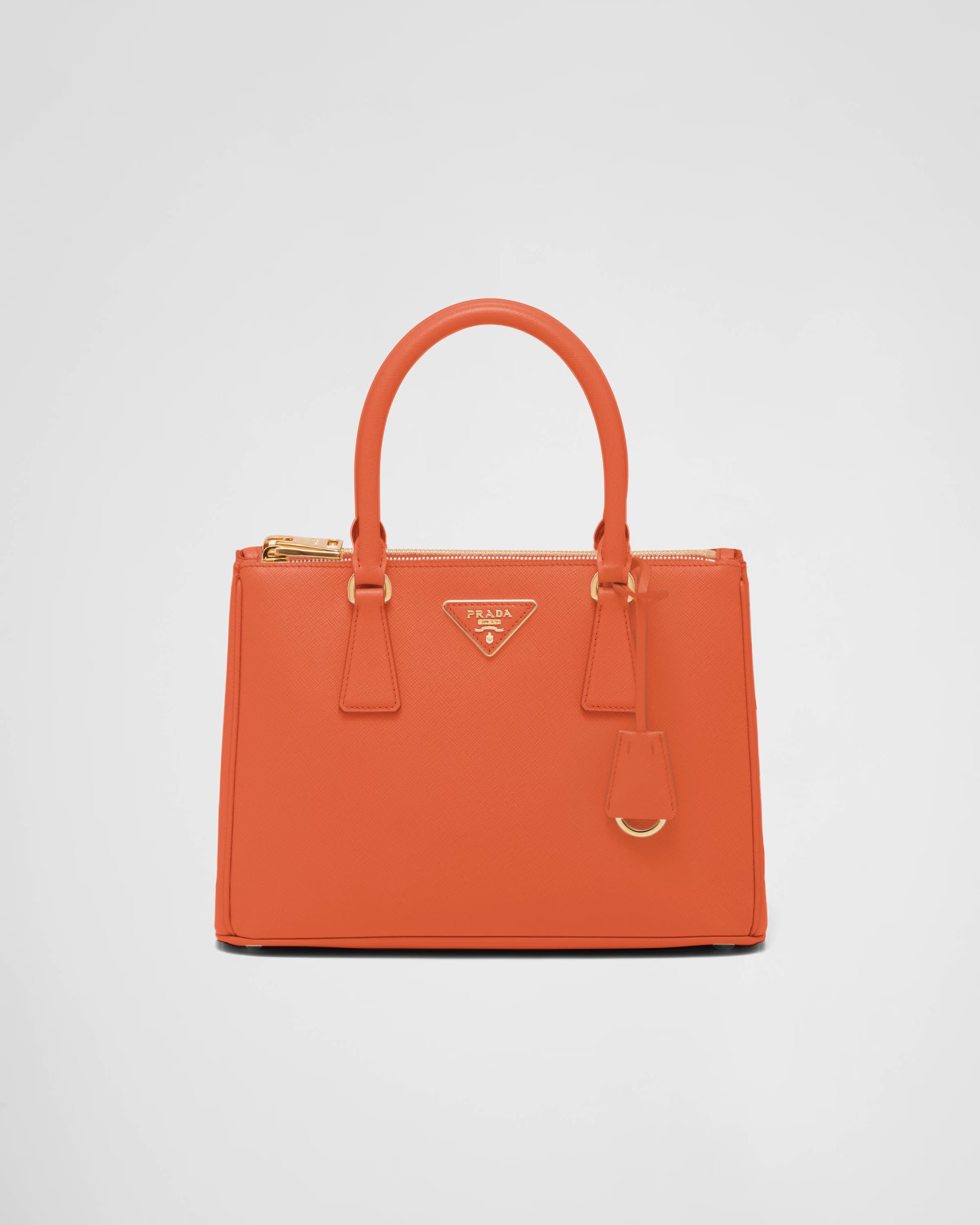 This is a replica Prada Galleria 1BA863 medium leather bag. ,Leather handles,Detachable, adjustable leather shoulder strap. Max. length: 120 cm – Min. length: 110 cm – Max. drop length: 60 cm – Min. drop length: 55 cm,Removable leather key ring,External zipper pockets,Metal hardware,Leather triangle with metal lettering logo on the front,Snap closure on the sides,Logo-print nylon lining with two pockets, including one with zipper,With purse feet,Height: 19.5cm,Width: 28cm,Length: 12cm