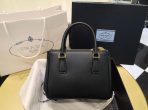 This is a replica Prada Galleria 1BA906 Saffiano leather mini-bag. ,Leather handles,Detachable, adjustable leather shoulder strap. Max. length: 120 cm – Min. length: 110 cm – Max. drop length: 60 cm – Min. drop length: 55 cm,Removable leather key ring,External zipper pockets,Metal hardware,Leather triangle with metal lettering logo on the front,Snap closure on the sides,Logo-print nylon lining with two pockets, including one with zipper,With purse feet,Height: 14.5cm,Width: 20cm,Length: 9.5cm