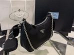 This is a replica Prada Re-Edition 1BH204 2005 Re-Nylon bag. ,Saffiano trim,Removable chain handle,Detachable adjustable 85 cm logo-print woven nylon shoulder strap,Removable Re-Nylon zipper pouch with Re-Edition keychain,Metal hardware,Enameled metal triangle logo on the front,Zipper closure,Re-Nylon logo lining,Height: 18cm,Width: 22cm,Length: 6cm