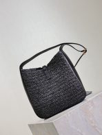 This is an replica SAINT LAURENT small version of the iconic 5 À 7 in raffia and vegetable-tanned leather.,