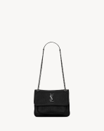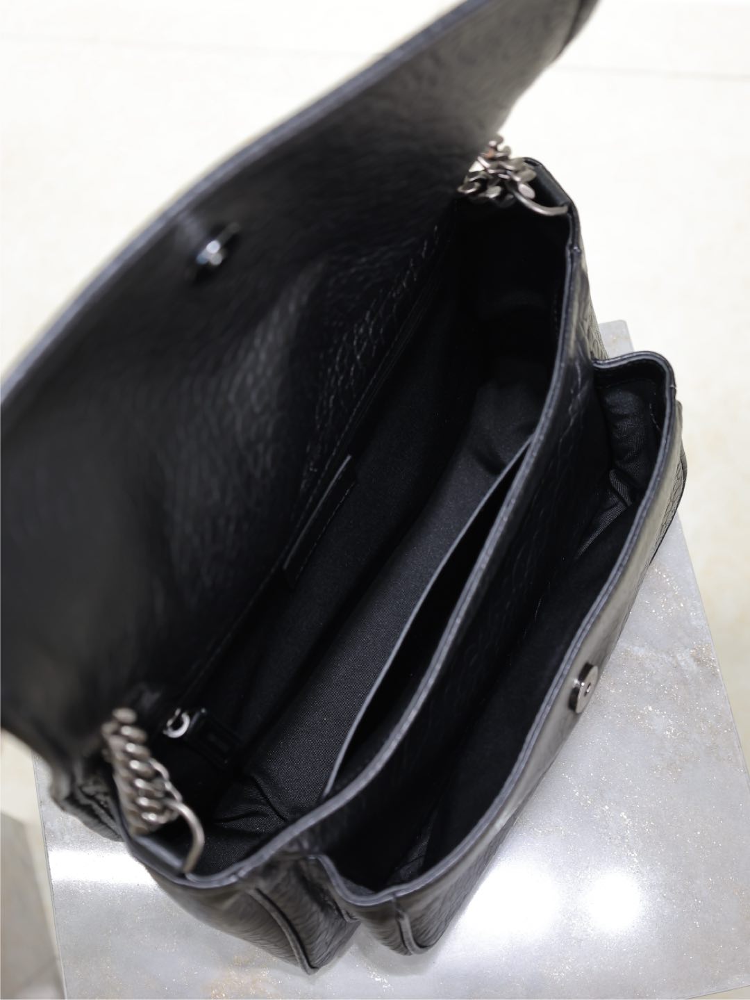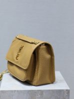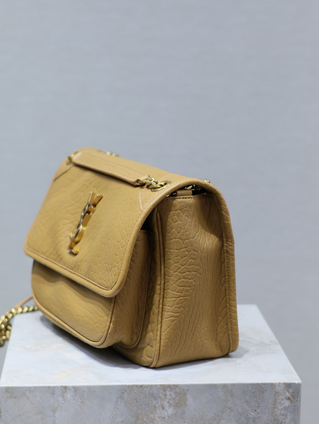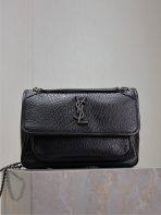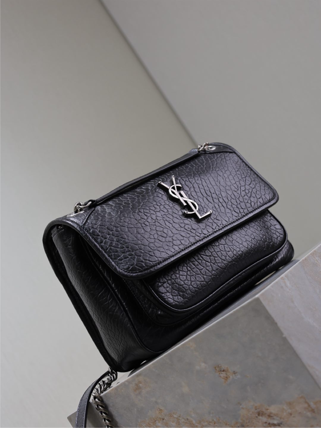 This is an replica SAINT LAURENT NIKI baby in grained lambskin.,small bag with front flap and the CASSANDRE, featuring a convertible leather-and-chain shoulder strap.,