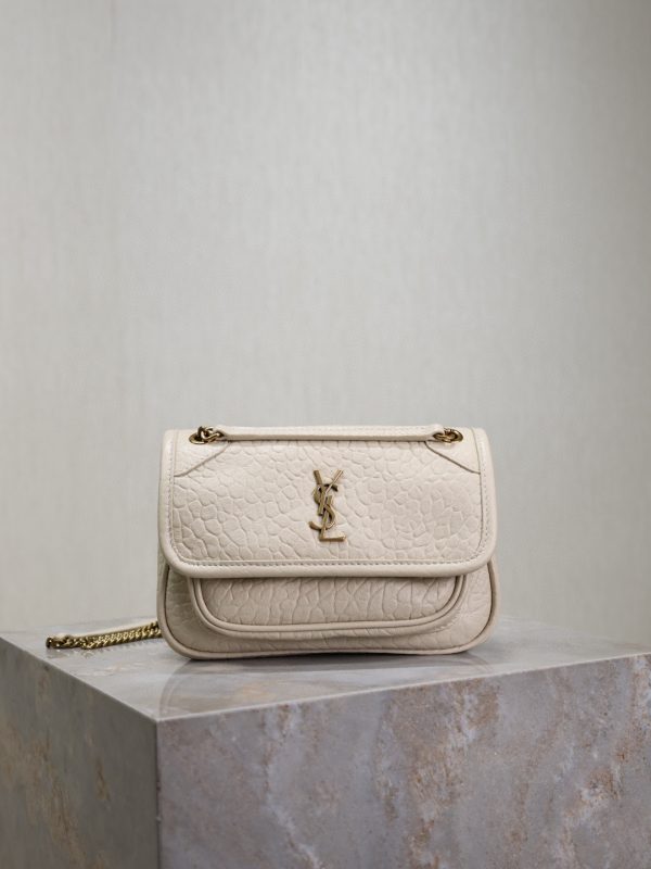 This is an replica SAINT LAURENT NIKI baby in vintage leather.,FLAP BAG IN VINTAGE CALF LEATHER, FEATURING CHEVRON QUILT OVERSTITCHING AND LEATHER-ENCASED CASSANDRE.,LIGHT, WITH TWO COMPARTMENTS AND A LARGE BACK SLOT POCKET.,FEATURES A SLIDING CHAIN STRAP THAT CAN BE WORN ON THE SHOULDER OR CROSSBODY.,