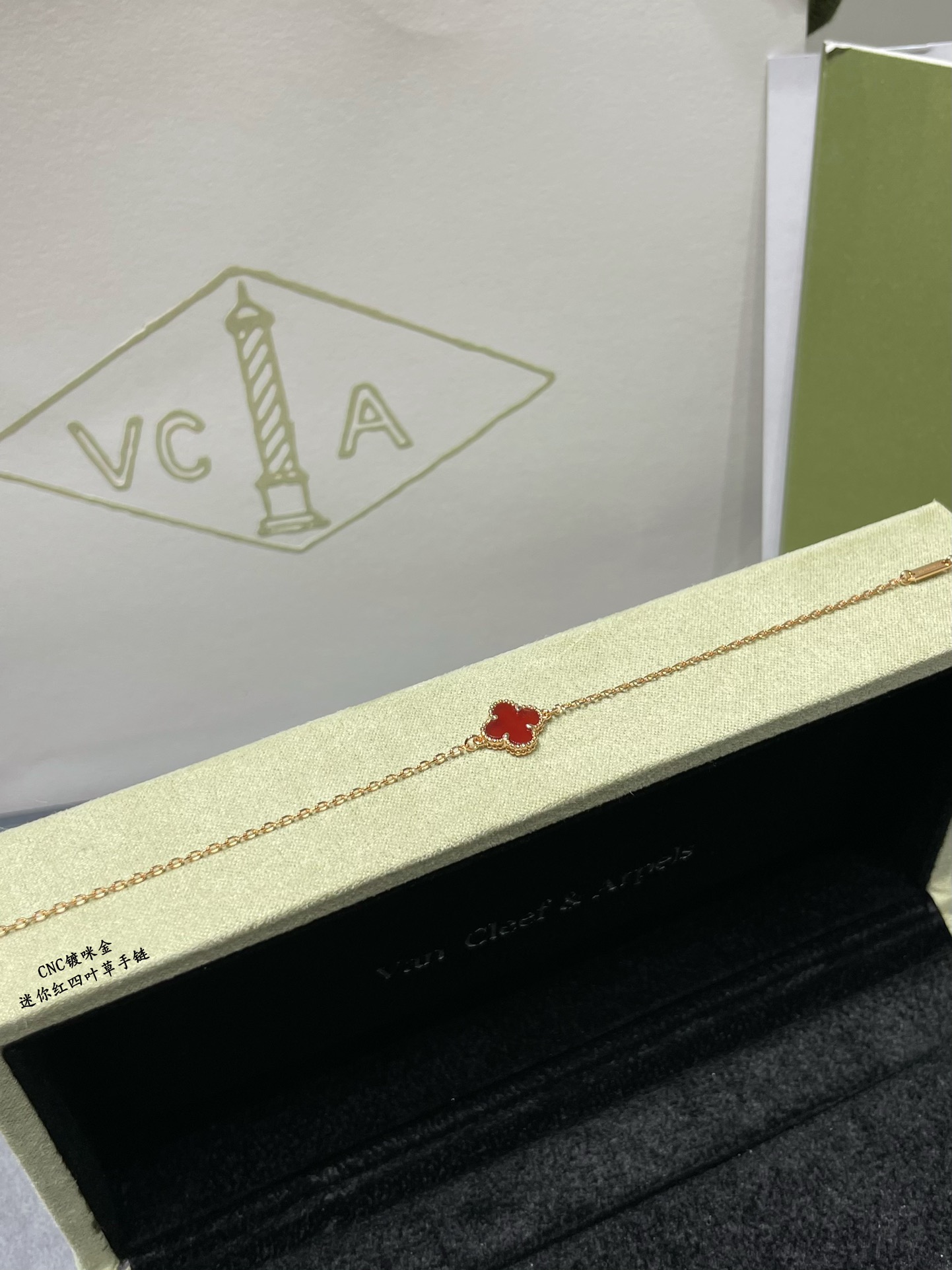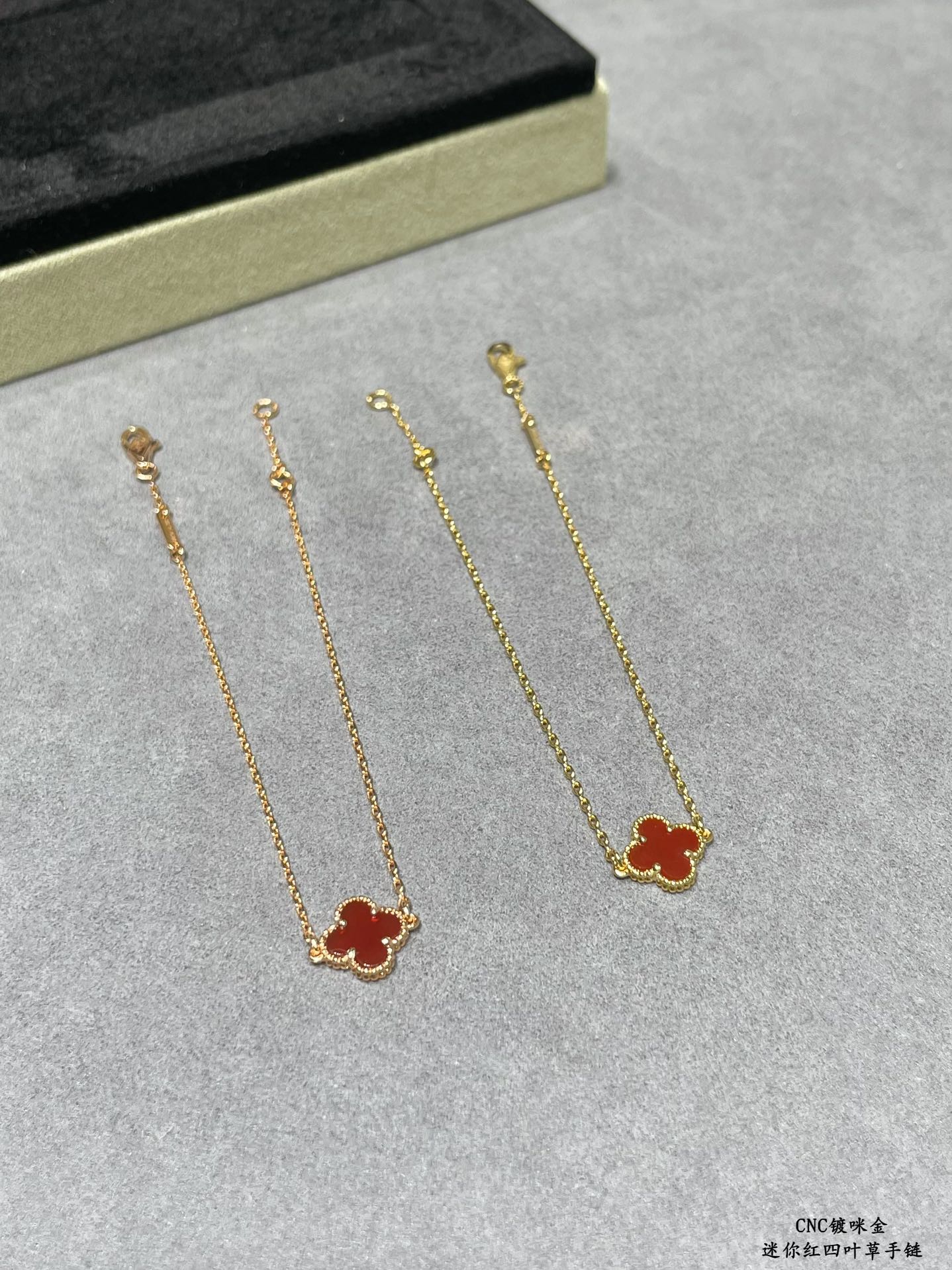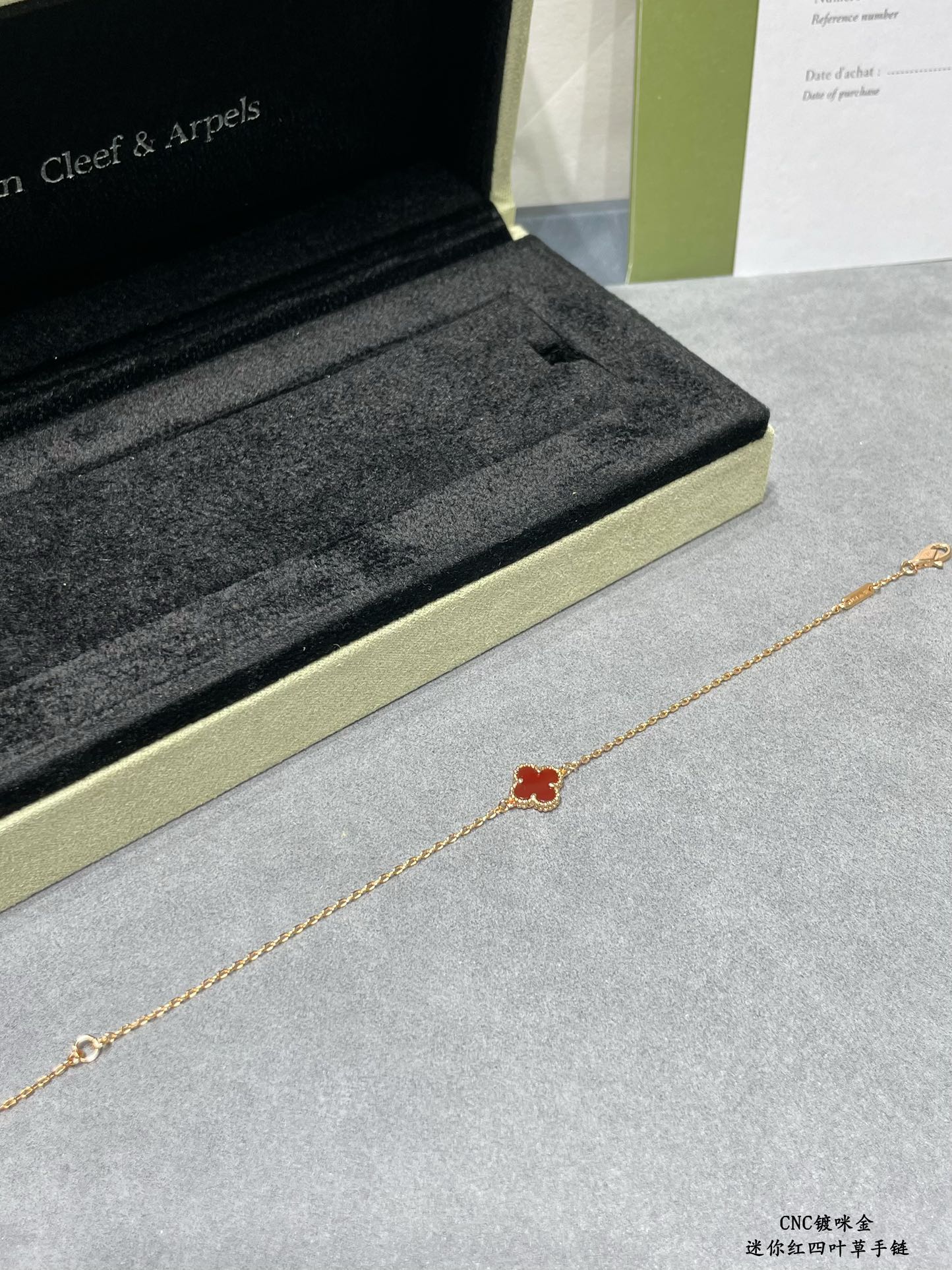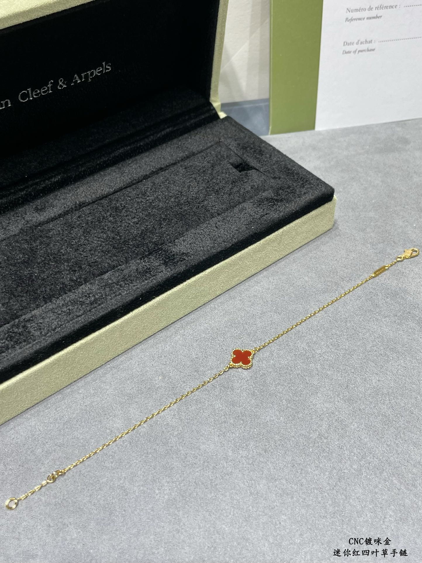 This is a replica of Van Cleef & Arpels Sweet Alhambra bracelet. All bracelets are crafted with the exact same design as the original. Product Description:Hallmark clasp, 18K yellow/rose gold plated on vermeil.