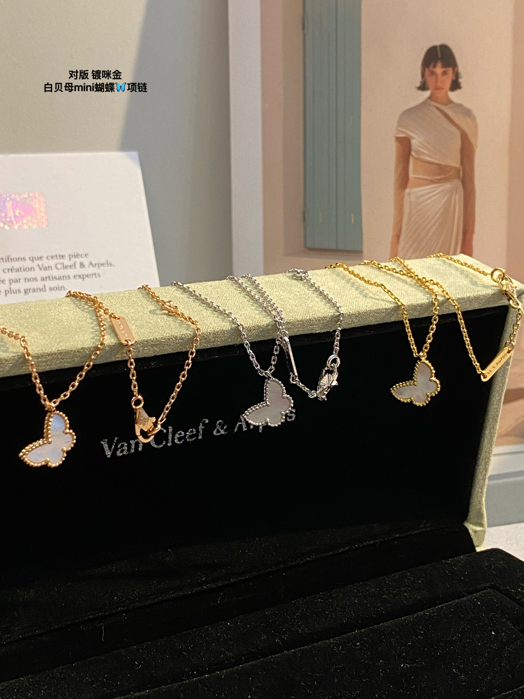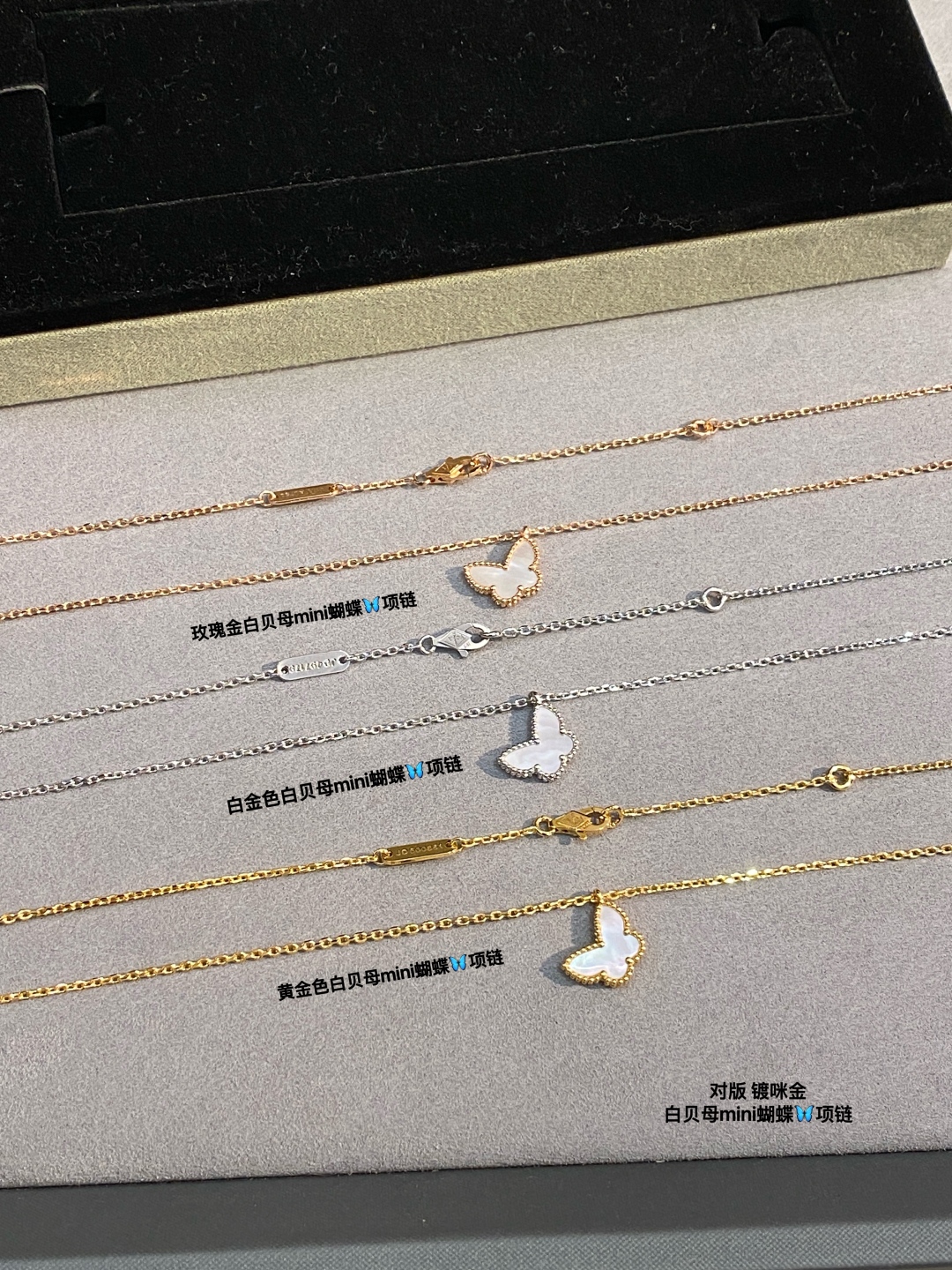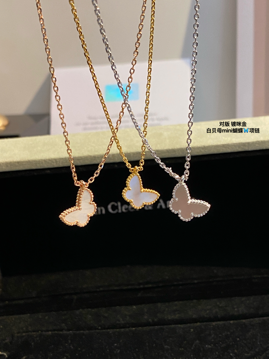 This is a replica of Van Cleef & Arpels Sweet Butterflies pendant. All necklaces are crafted with the exact same design as the original. Product Description:18K rose/white/yellow gold plated on vermeil, mother of pearl.