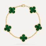 This is a replica of Van Cleef & Arpels Vintage Alhambra bracelet, 5 motifs. Coming in different stones – Carnelian, Tiger Eye, Malachite, Agate, Diamond and Onyx. all bracelets are crafted with the exact same design as the original. Product Description:Mother-of-pearl: 5 stonesHallmar