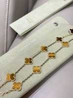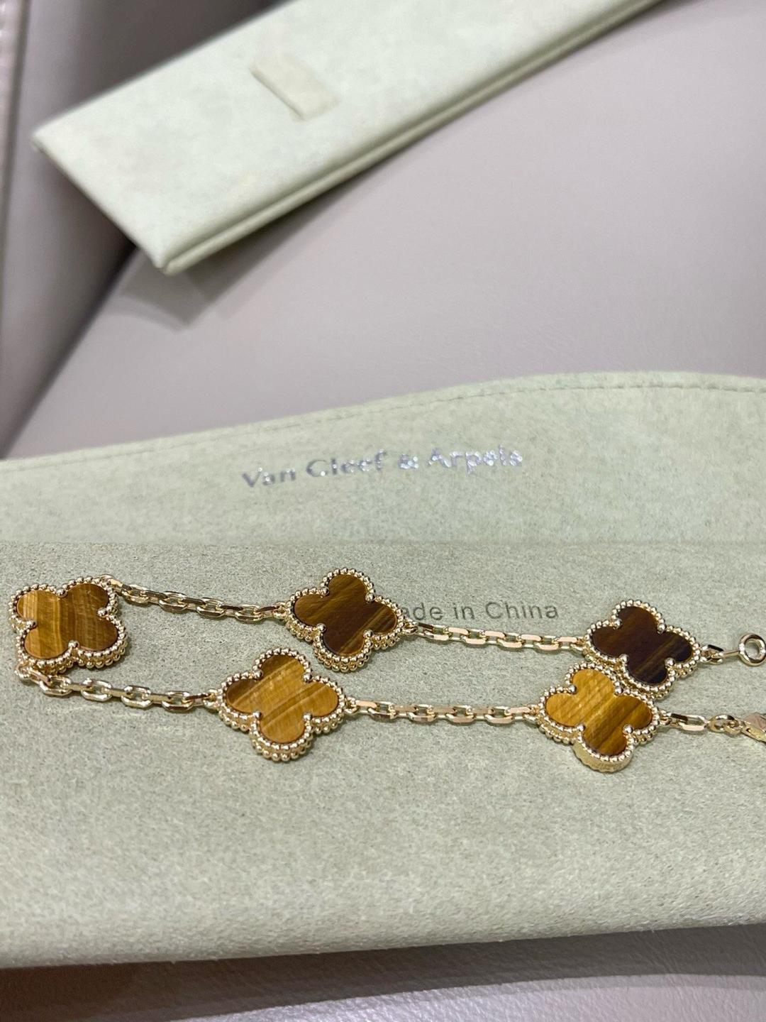 This is a replica of Van Cleef & Arpels Vintage Alhambra bracelet, 5 motifs. Coming in different stones – Carnelian, Tiger Eye, Malachite, Agate, Diamond and Onyx. all bracelets are crafted with the exact same design as the original. Product Description:Mother-of-pearl: 5 stonesHallmar